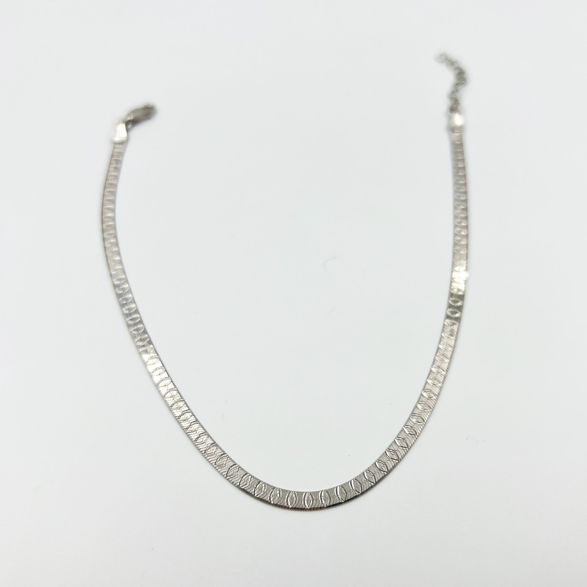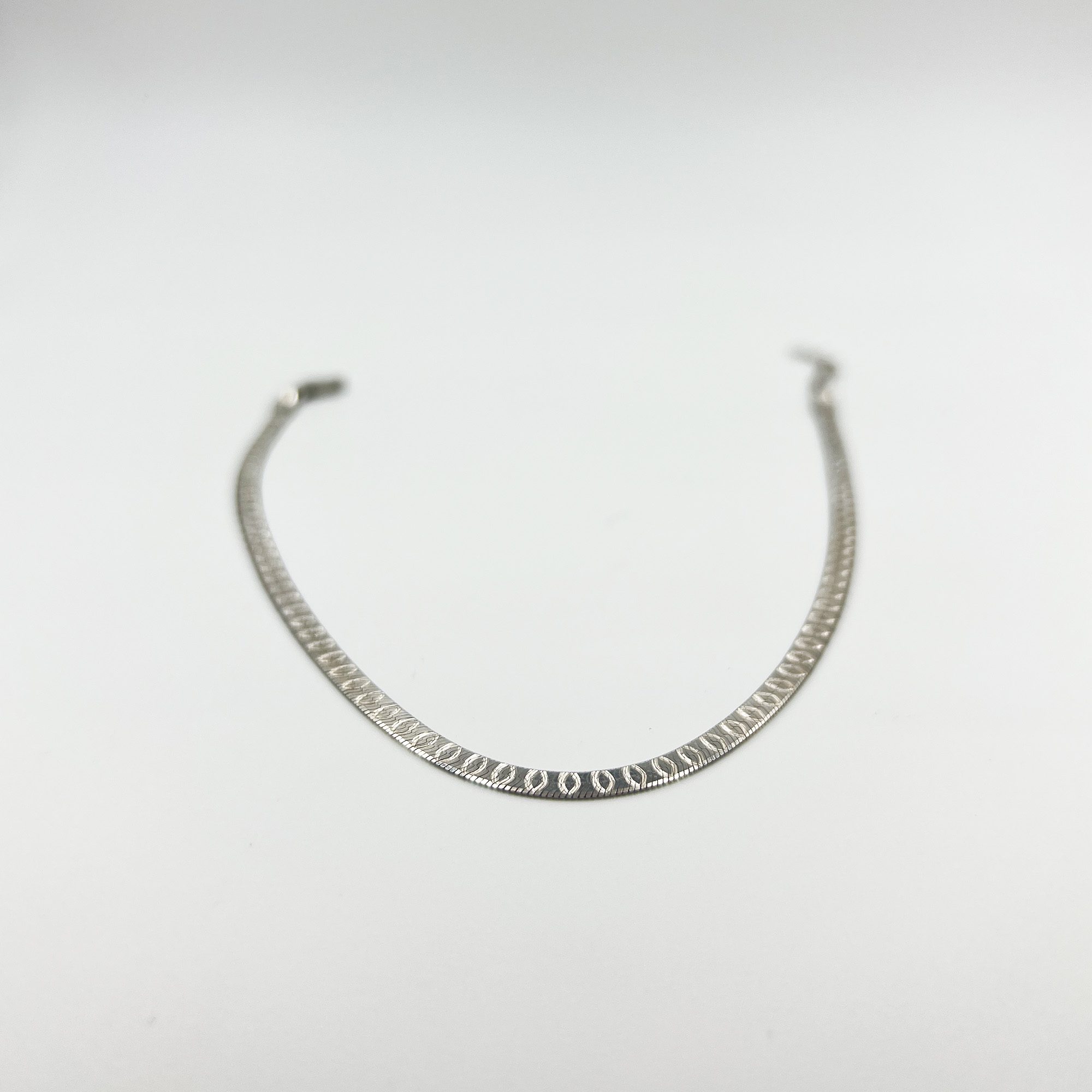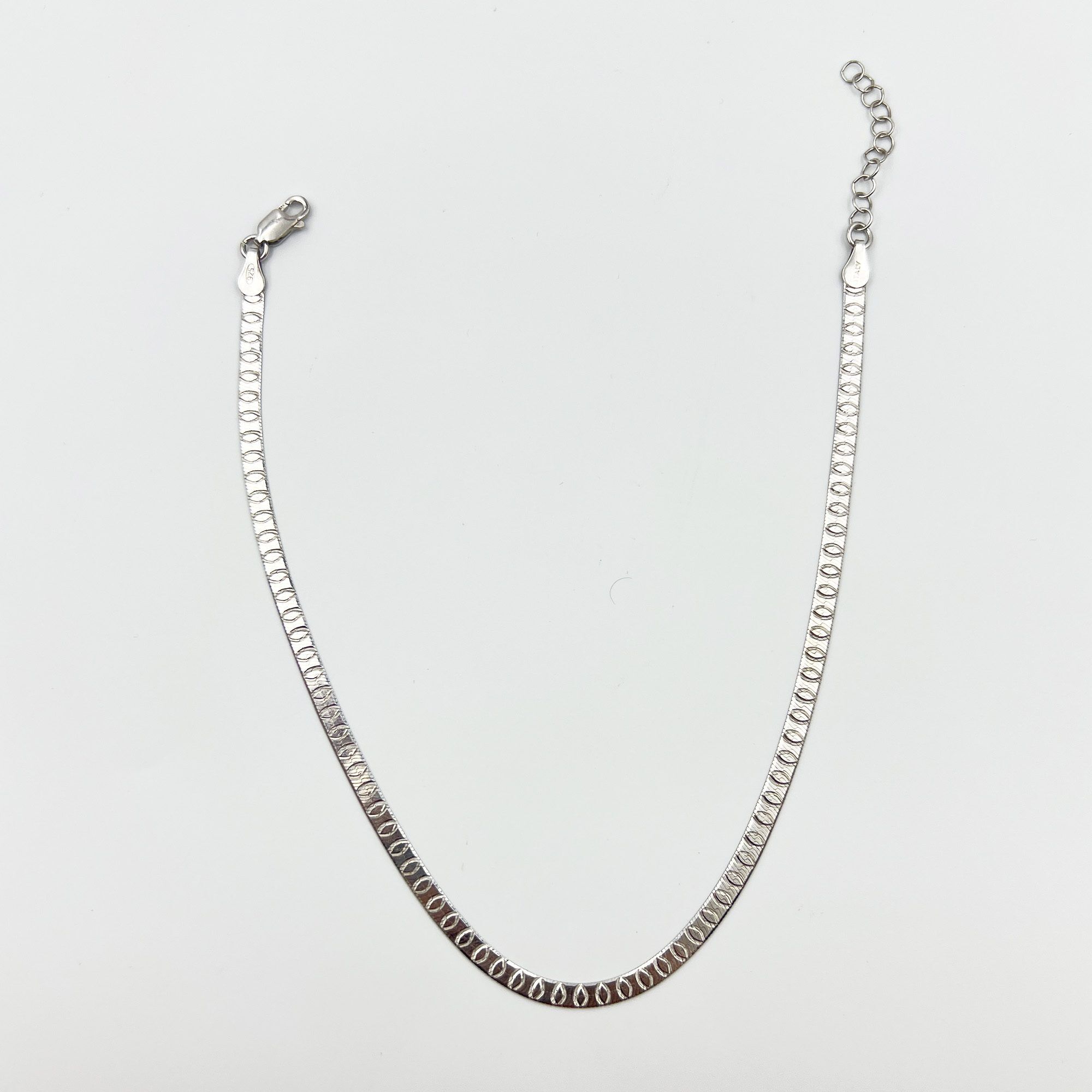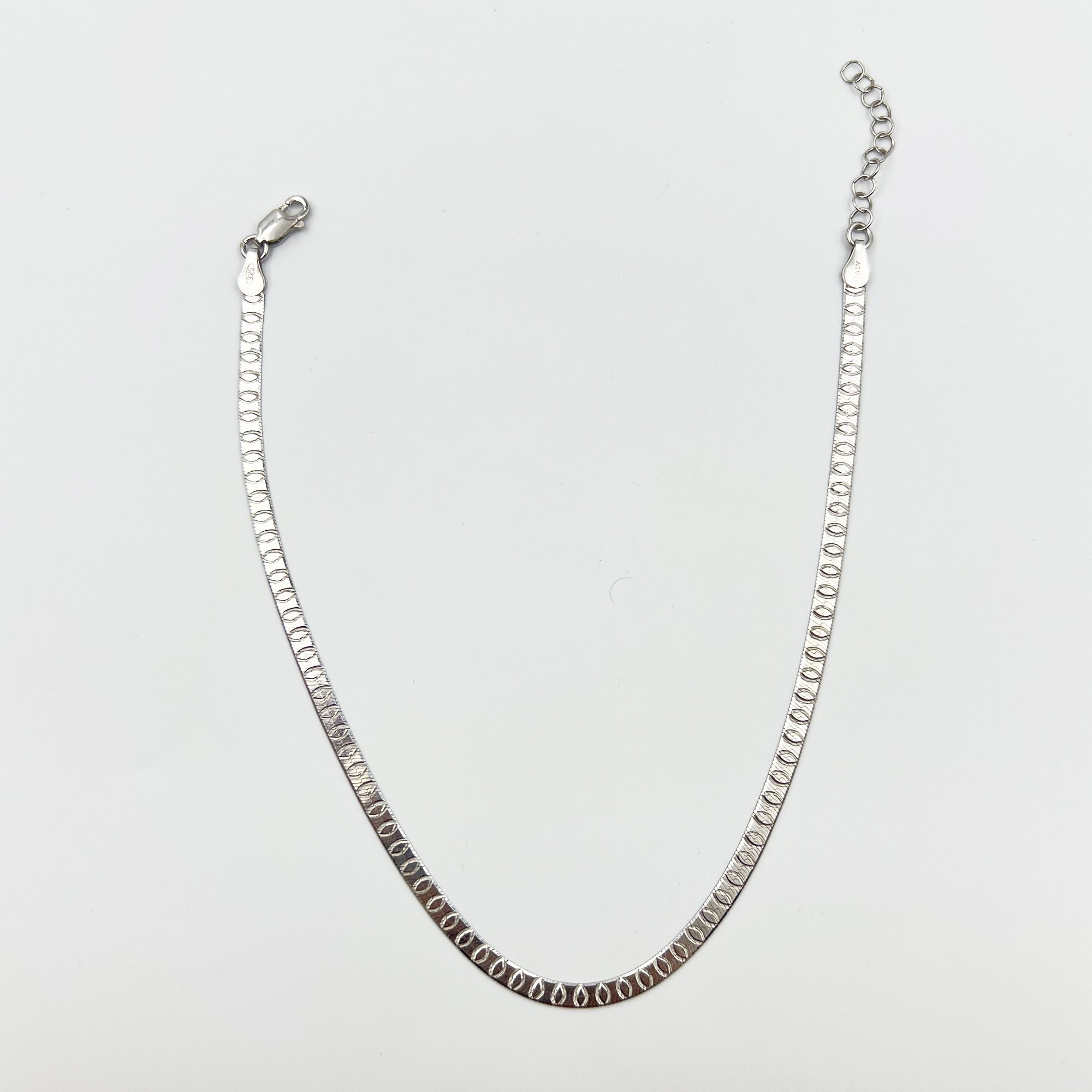 A bold yet minimal touch — our Aria 925 Silver Anklet features a sleek geometric texture that shines with every step. Handcrafted in pure 925 silver for timeless elegance.
