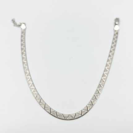 A bold yet minimal touch — our Aria 925 Silver Anklet features a sleek geometric texture that shines with every step. Handcrafted in pure 925 silver for timeless elegance.