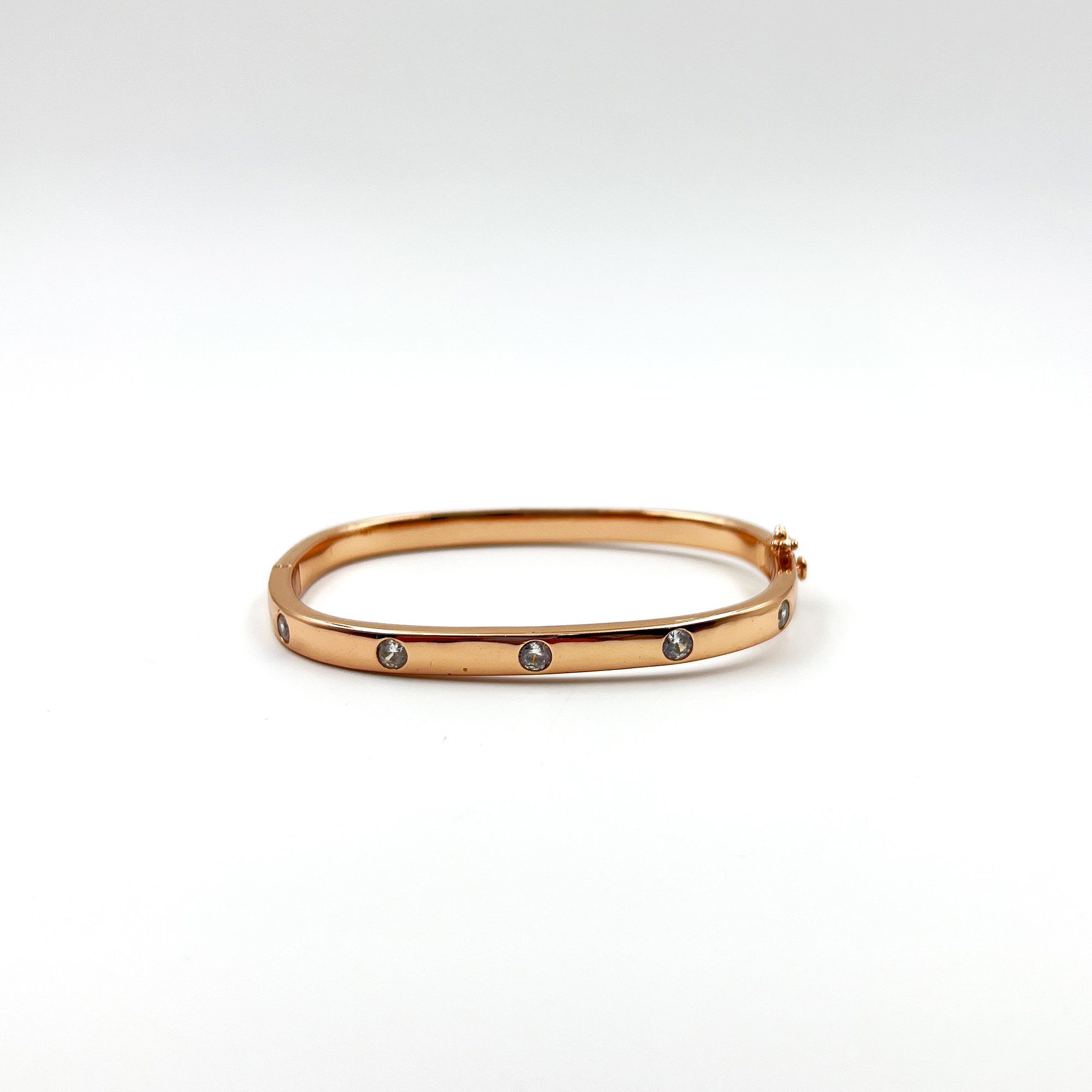 Crafted in 925 sterling silver and bathed in a blush rose gold finish, the Aurelia Stud Bangle radiates clean sophistication. With evenly spaced bezel-set stones that catch the light just right, it’s the kind of everyday luxury that doesn’t need to shout. Think quiet glamour with a sharp silhouette — perfect for stacking or solo wear.