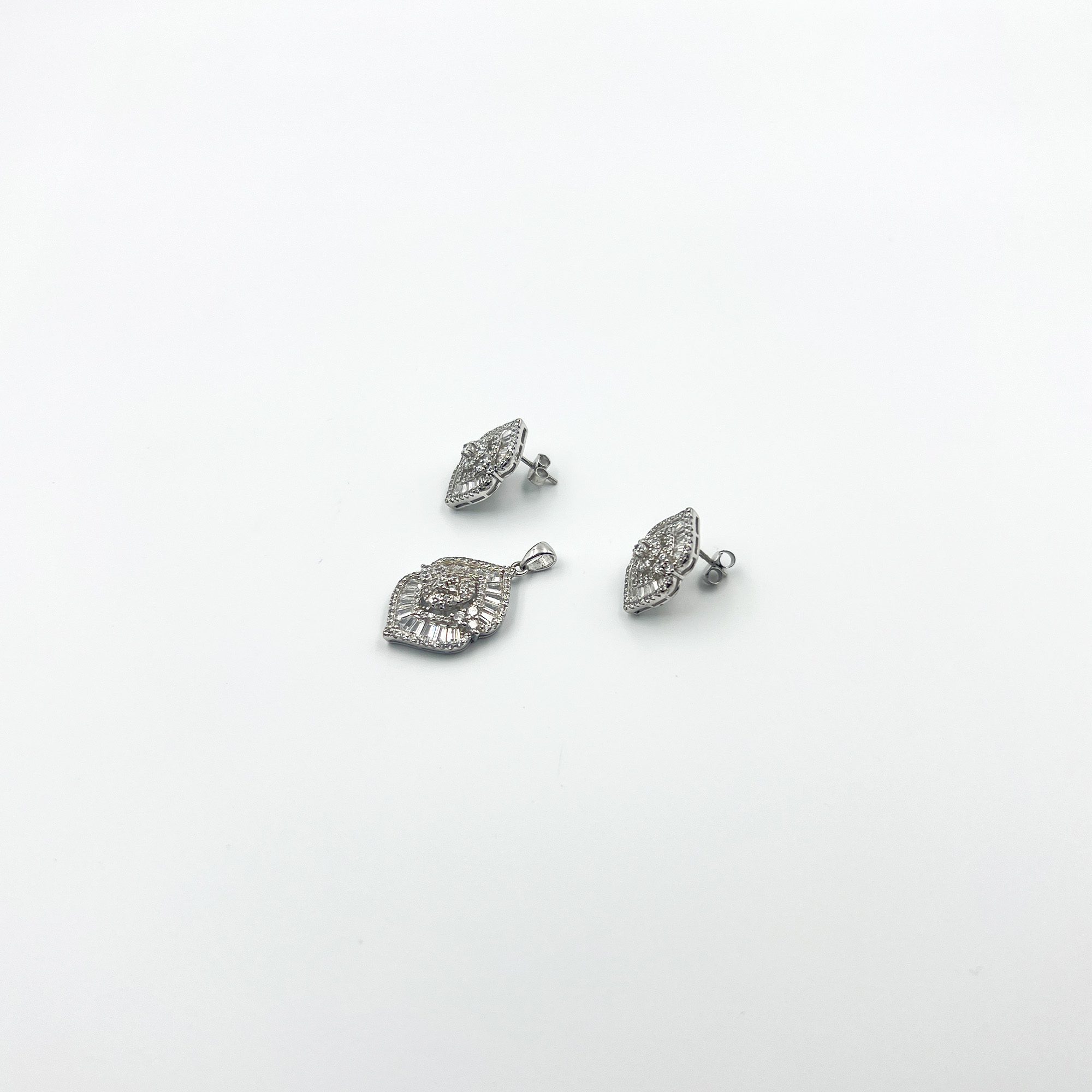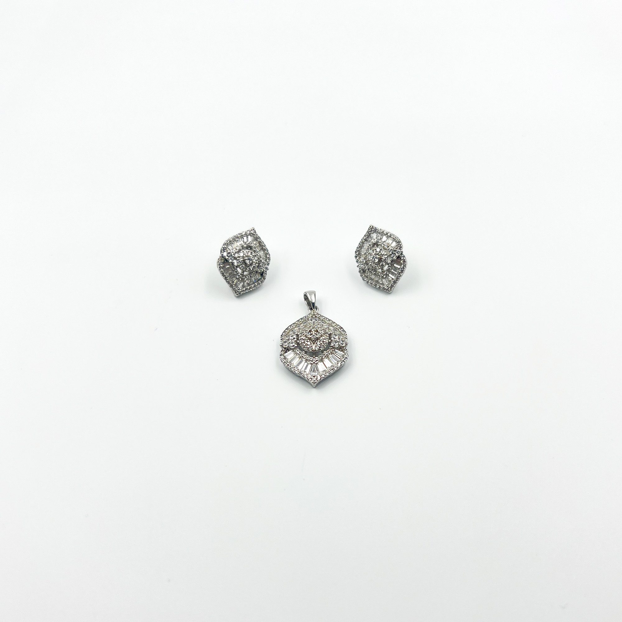 A statement of timeless sophistication, the Eira Gleam set captures the elegance of symmetry and shimmer. With its marquise-inspired form, layered with baguette and pave-set stones, this set brings a graceful sparkle to every movement. Whether worn at dusk soirées or daylit celebrations, it holds the power to elevate any look with quiet opulence.