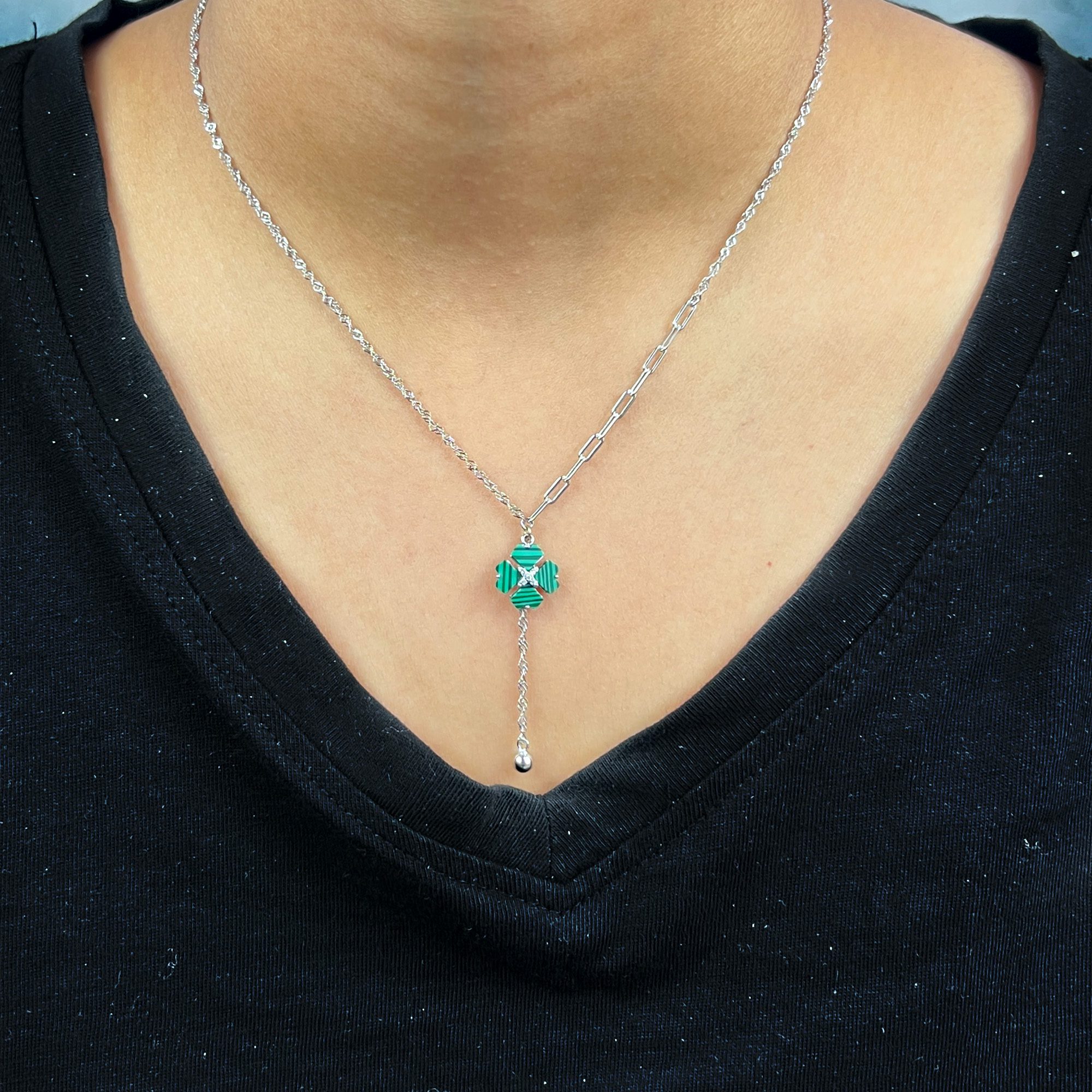 A blooming malachite flower pendant on sleek silver — minimal, vibrant, and effortlessly stylish
