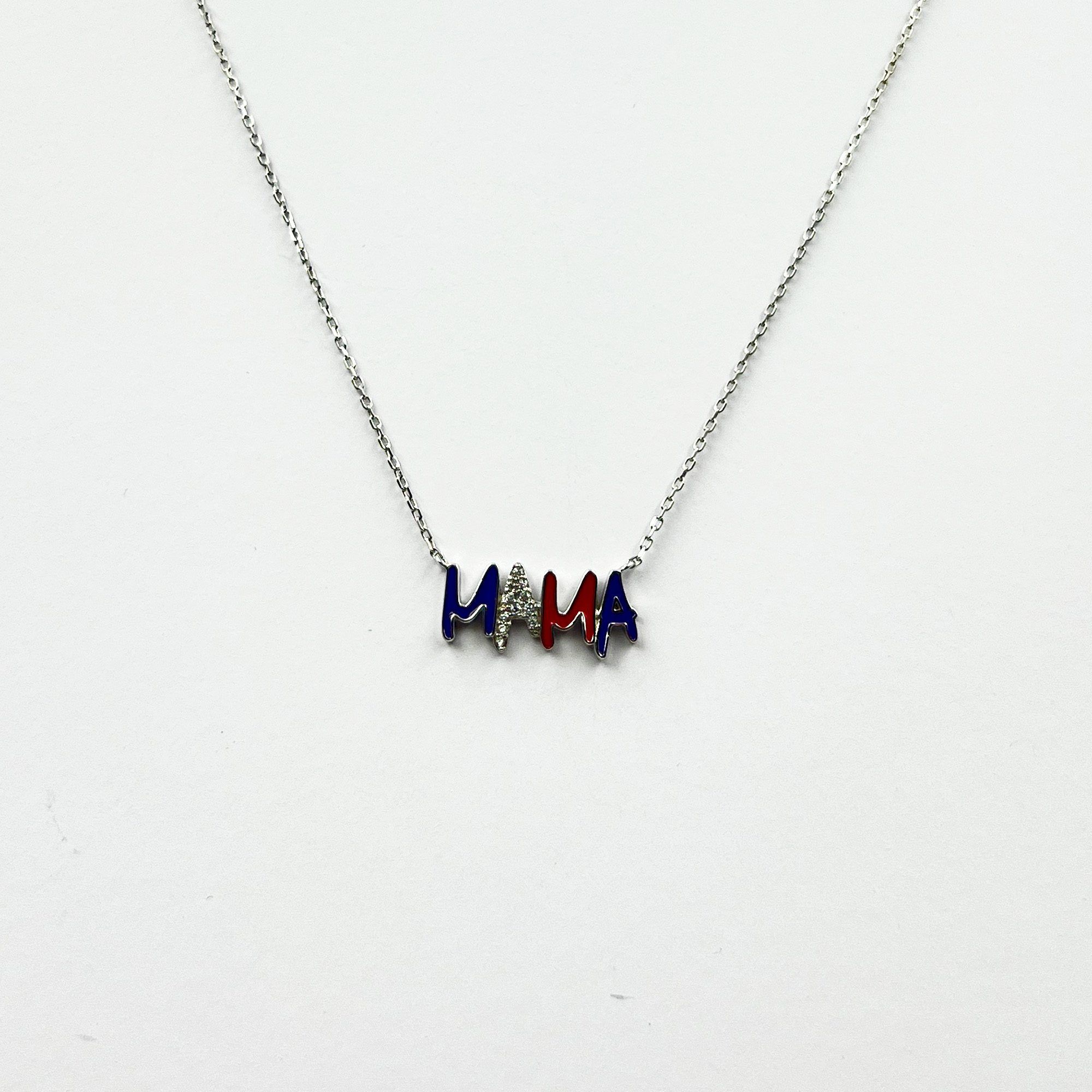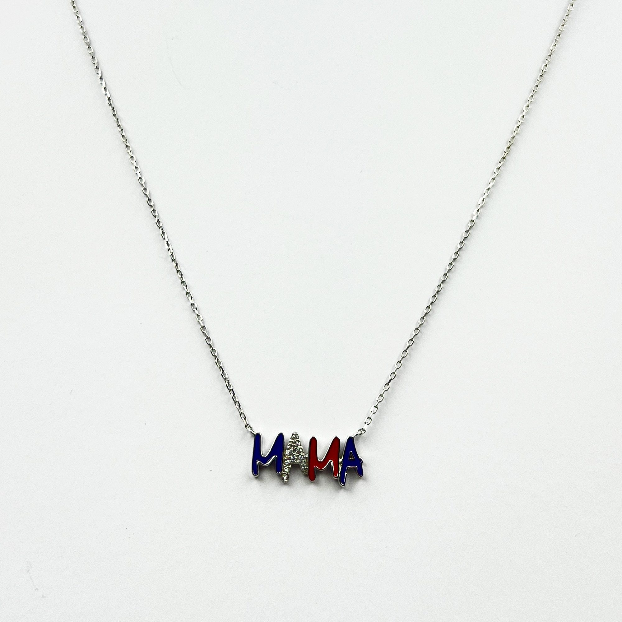 | A playful tricolour enamel letter pendant for mom on a sleek 925 silver chain — bold, minimal, and full of personality. |