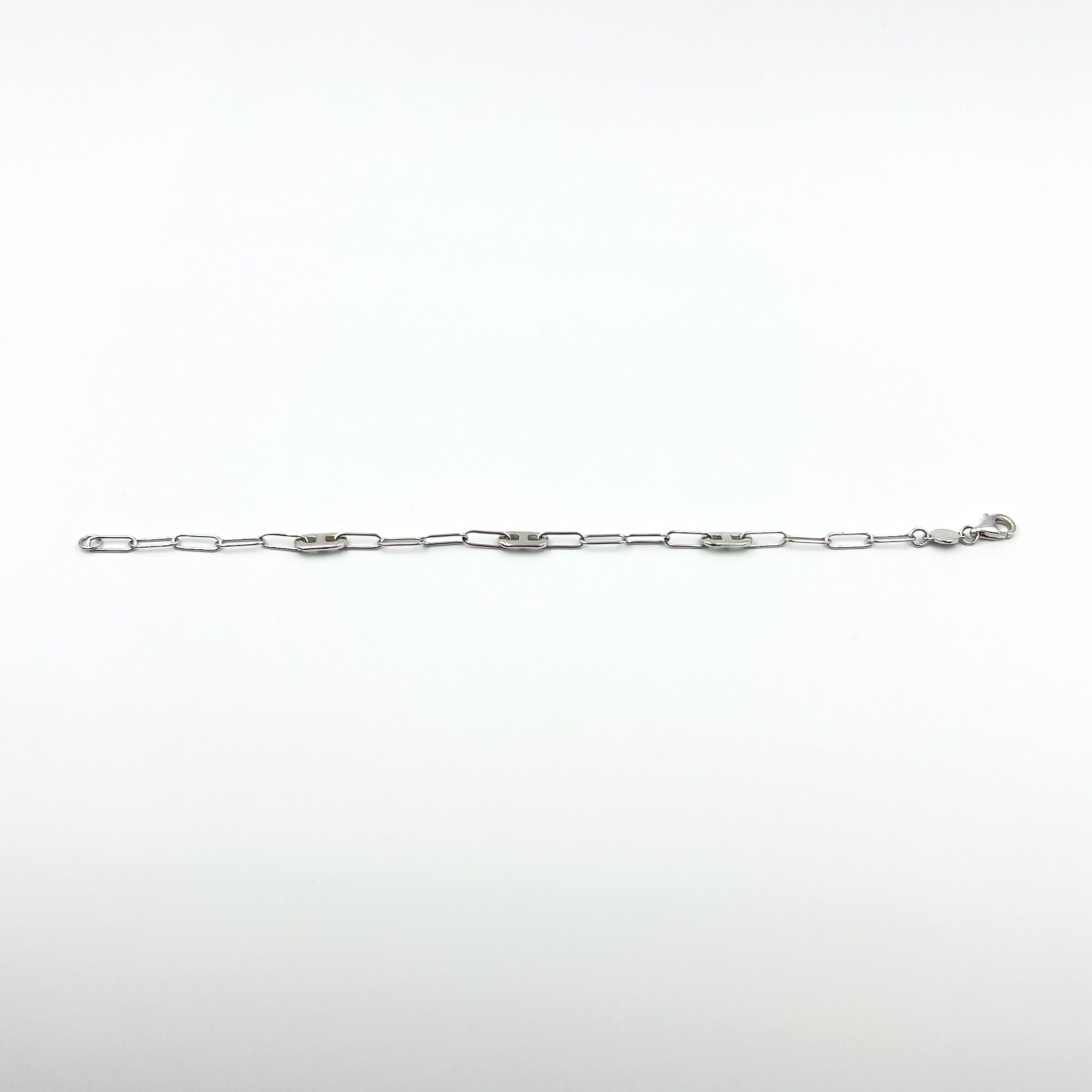 Sleek elongated links in 925 sterling silver, accented with subtle black onyx details, create a bracelet that blends minimalism with a hint of bold sophistication.