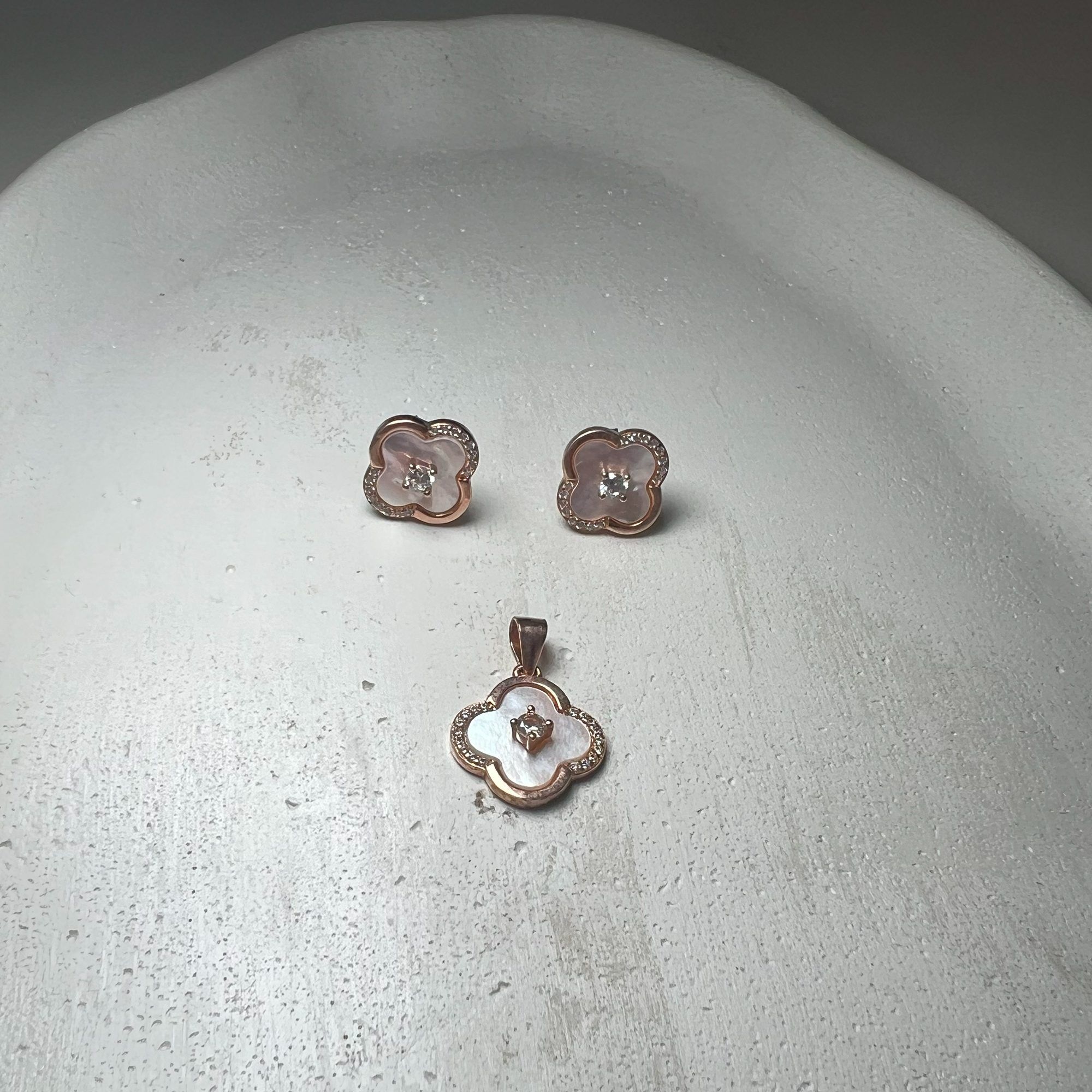 Sparkling Clover Pendant Necklace and Earrings Set | ||