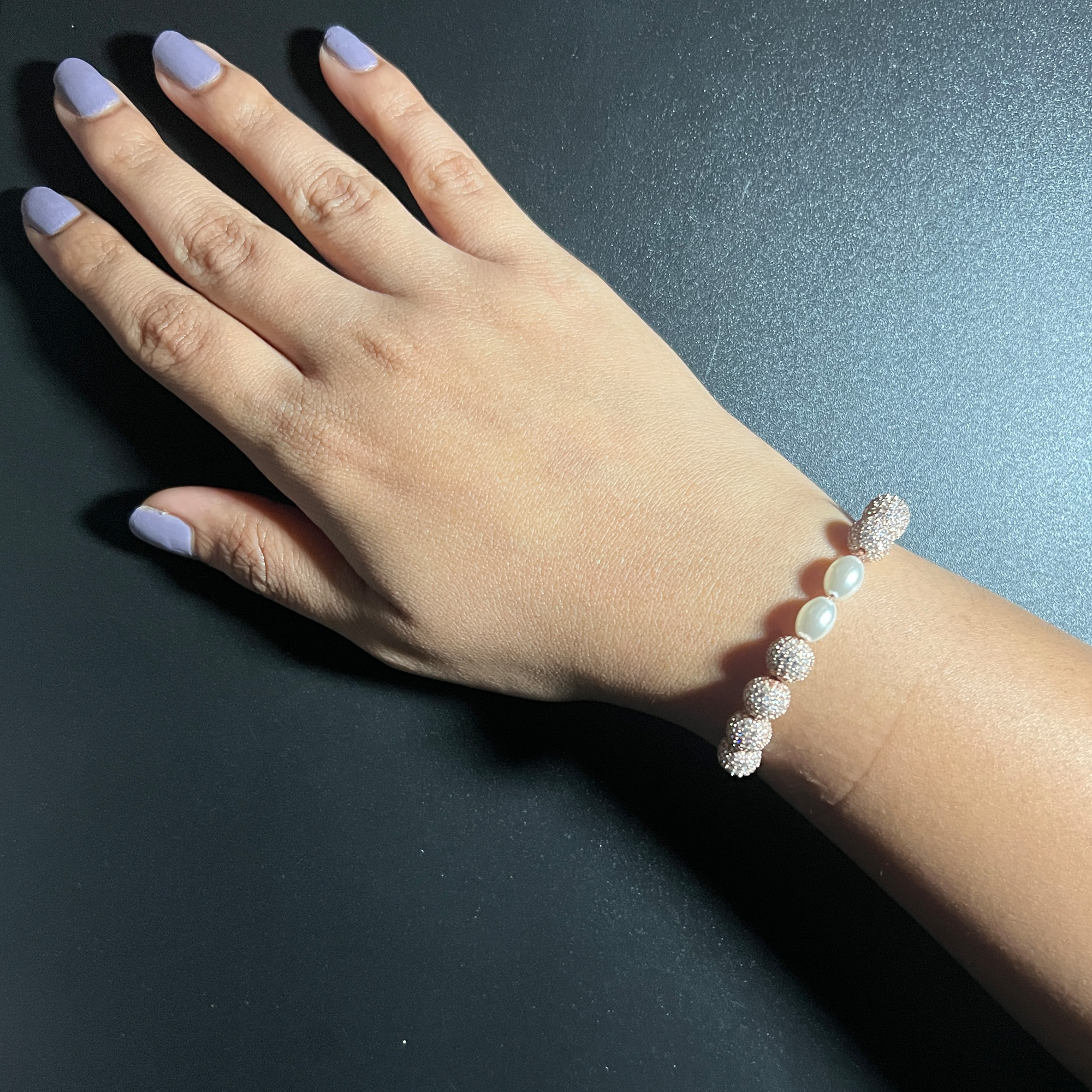 Size-free, sleek, and sparkling—this mini bracelet pairs Swarovski shine with subtle pearl charm