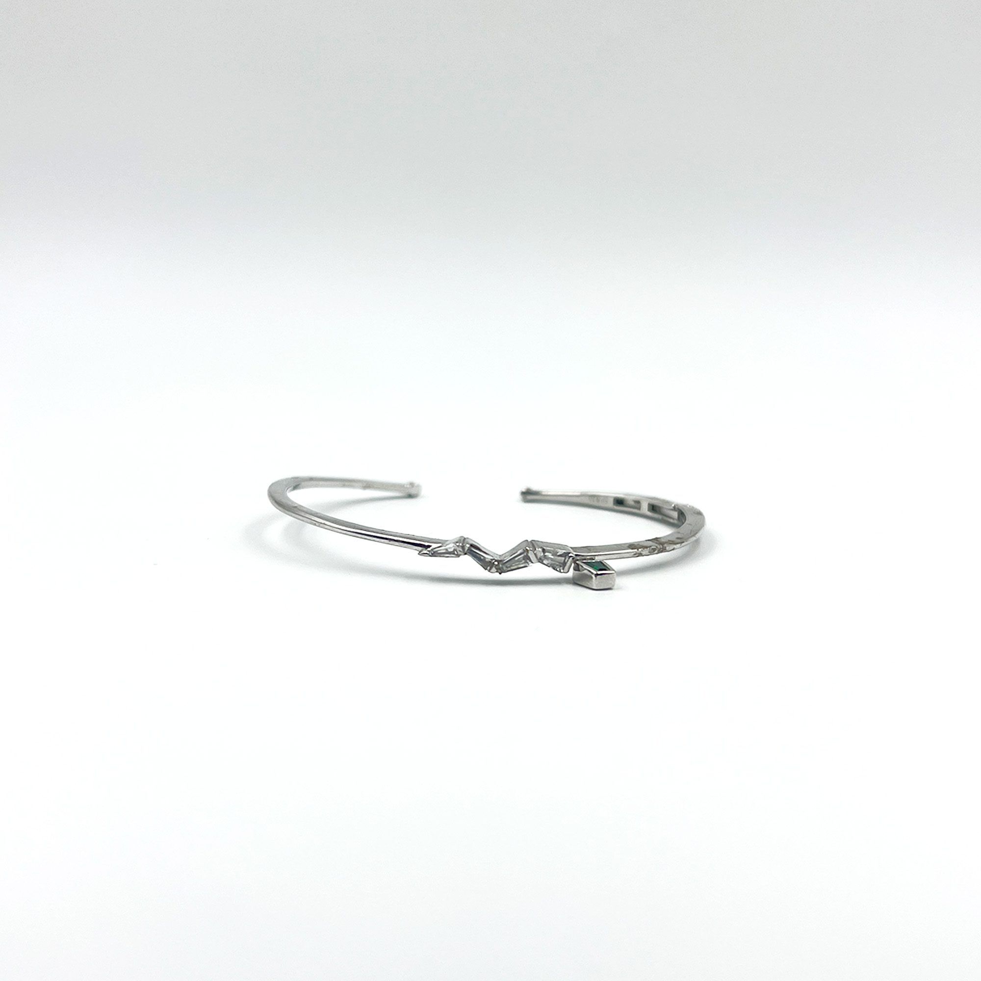 A delicate blend of modern grace and subtle luxury, the Verdé Whisper Cuff is crafted in 925 sterling silver and adorned with sleek baguette-cut zirconia. The highlight — a single emerald-hued drop — adds just the right touch of color and intrigue. Understated yet striking, it’s perfect for both everyday wear and evening elegance.