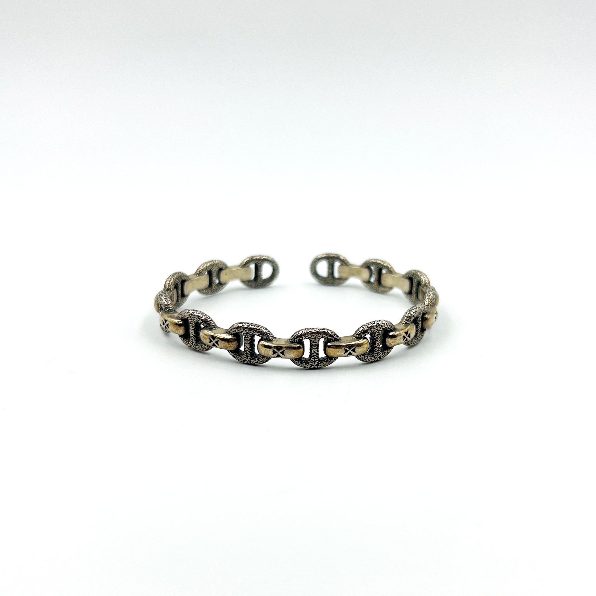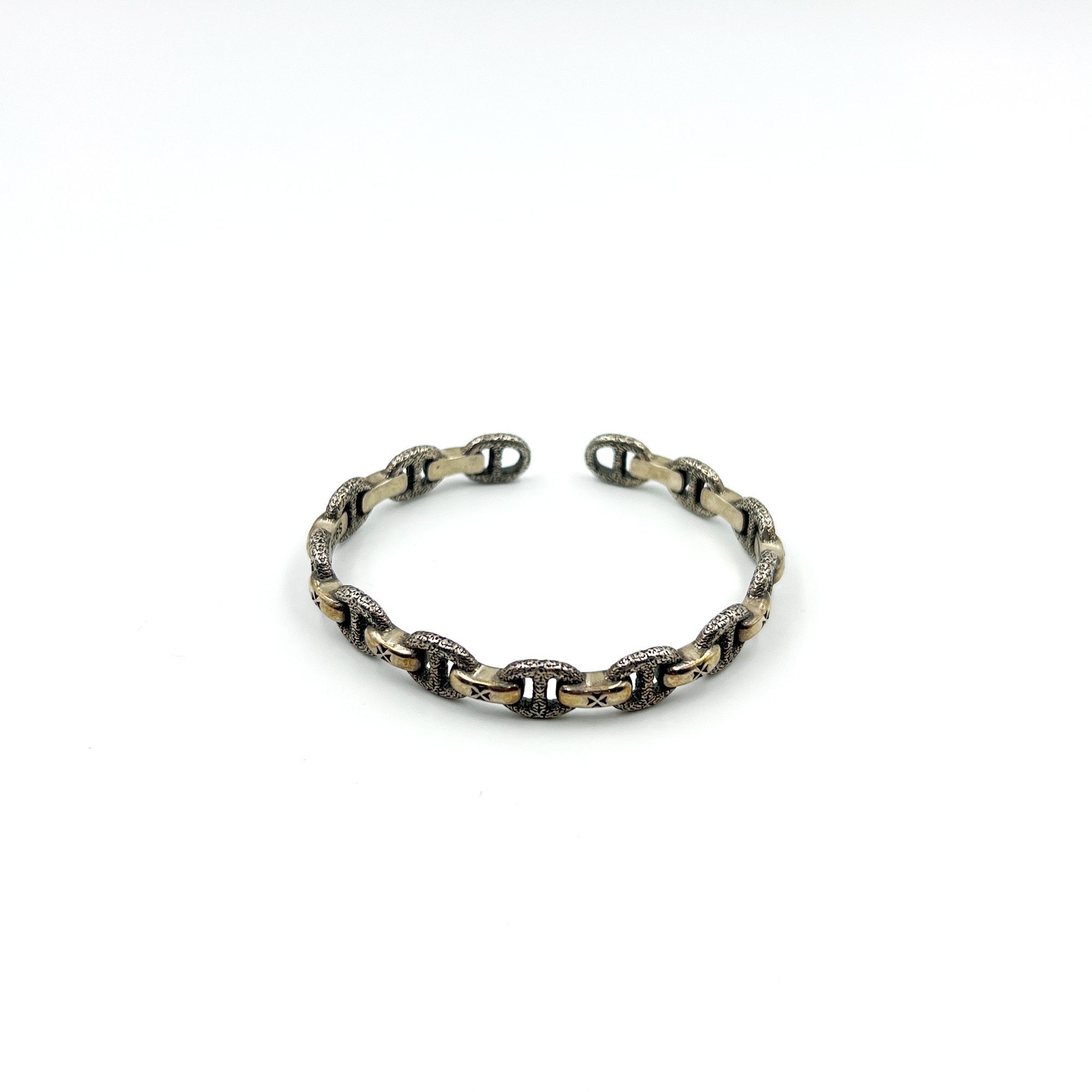 The Xen Chain Cuff redefines edge with its raw, open-link form and rugged oxidized finish. Handcrafted in 925 sterling silver, each link is detailed with engraved crosses — a subtle nod to strength, rebellion, and craft. Designed for the bold-hearted, this piece doesn’t just sit pretty — it speaks.